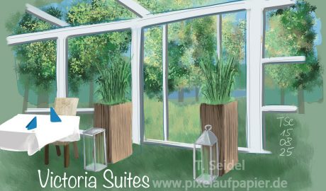 Die erste Version des Gartenbildes aus meinem Hotel am Scharmützelsee hatte noch kräftige Konturen … Wie sehr stilisiert man da?weiter lesen – genauer schauen >