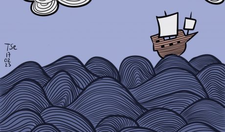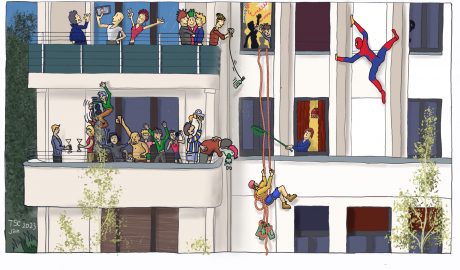 Das ist eben schnell gemacht digital: ein schöner Farbverlauf, gleichmäßig deckende Flächen, nachträglich noch helle Flächen (Sprechblasen) und Schrift auflegenweiter lesen – genauer schauen >