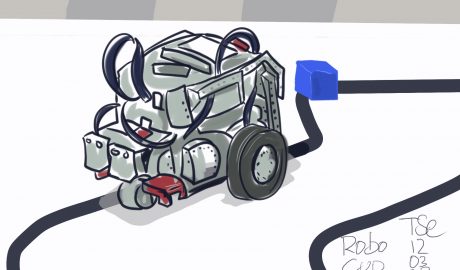 IPAD – Sketch nach Foto, Besucher*innen beim Robocup der Schulen, Lego-Roboterweiter lesen – genauer schauen >