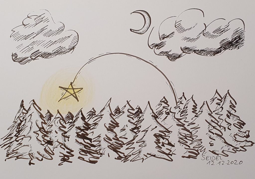 Mit dem CalligrafieFüller und dem Fineliner nur s/w. Konzentration auf das Sternengelb … schon besser. 2020-12-16